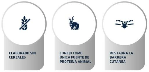 ADVANCE DIET VETERINARY DIETS ATOPIC RABBIT & PEAS est un aliment diététique complet et équilibré pour chiens adultes conçu pour prendre soin de la peau en cas de dermatite et de perte excessive de poils. quant à la réduction des intolérances aux ingrédients et aux nutriments.