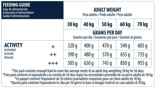 Aliment spécialement indiqué pour les chiens adultes de grandes races (poids supérieur à 30 kg).