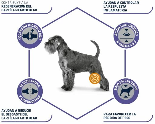 Soutien nutritionnel pour les chiens ayant du surpoids et des pathologies concernant l’inflammation et les douleurs articulaires. Soutient la santé des articulations après une intervention chirurgicale ou un traumatisme. Le soutien nutritionnel concerne les cas d’arthrose et le traitement préventif.
