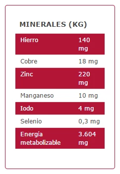 Riz (35%), saumon (déshydraté 28%), poulet, pomme de terre, graisse animale, pois, protéines animales hydrolysées, pulpe de betterave, levure de bière, cellulose raffinée, sel, carbonate de calcium, huile de poisson, thé verte, chondroïtine, glucosamine, F.O.S., M.O.S., pépins de raisins, agrumes.