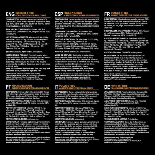 Ingrédients Arquivet Dog Original Adult Original Poulet et Riz