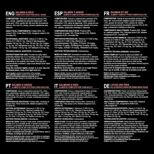 Ingrédients Arquivet Dog Original Adult Original Saumon et Riz