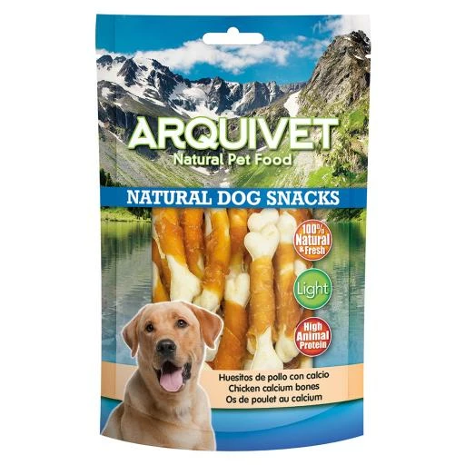Snack sous forme d’os avec de la viande de poulet roulée. 100% naturel. Avec une teneur élevée en protéines animales et une faible teneur en matières grasses (Light Product). Aliment complémentaire pour votre chien, avec un supplément de calcium, très riche en nutriments.