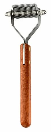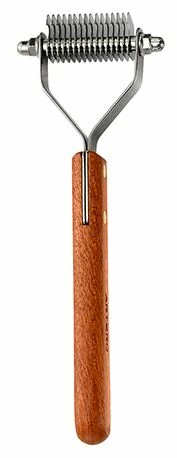 Les lames ont un profil arrondi pour éviter d’endommager la peau. La poignée est en bois pour être agréable au toucher et pour assurer votre confort d’utilisation. Votre meilleur ami arborera un pelage impeccable et très doux.