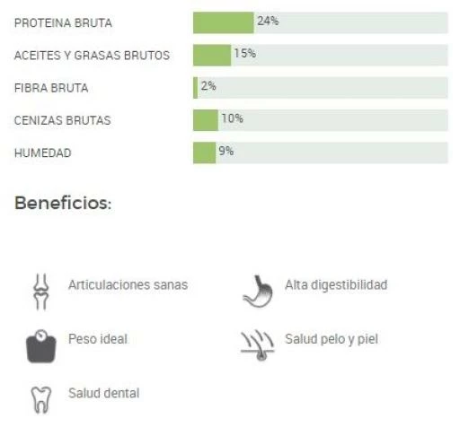 Une alimentation naturelle complète et équilibrée pour les chiens adultes. Ingrédients Protéines de porc déshydratées, maïs, protéines de poulet déshydratées, graisse de poulet (source d’oméga 6), pulpe de pomme, farine de gluten de maïs, riz, agneau déshydraté (4%), sel, pois déshydratés (source naturelle de vitamines, protéines et minéraux), huile de saumon (source d’oméga 3 et d’oméga 6), chlorure de potassium, mélange de romarin et d’agrumes (fort pouvoir conservateur), mélange d’huiles végétales riches en alpha-tocophérols (fort pouvoir antioxydant).