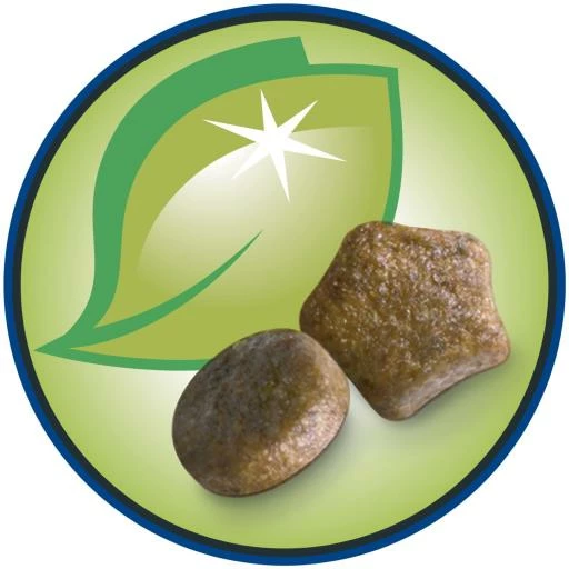 Céréales, viande et sous-produits animaux (8%), extraits de protéines végétales, huiles et graisses, produits d’origine végétale, légumes (racine de chicorée séchée 1,1%), et des minéraux.
