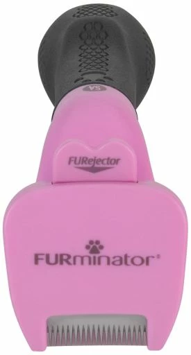 Lorsque votre outil ramasse beaucoup de poils, vous pouvez les retirer des dents de l’outil en appuyant sur le bouton FURejector®. *En cas d’utilisation conforme aux instructions. Veuillez lire attentivement les instructions et les questions fréquemment posées avant de commencer le toilettage. N’utilisez l’outil de désincarcération du sous-poil FURminator® que de la manière indiquée. L’utilisation de l’Undercoat deShedding n’est pas un processus normal de brossage ou de peignage, car il élimine les poils morts et détachés sans couper ou endommager le poil de couverture