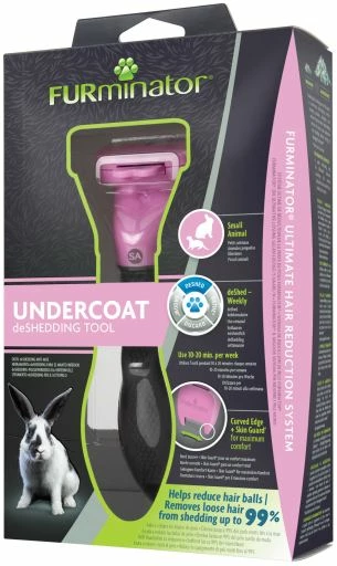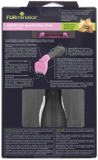 L’outil d’élimination du sous-poil FURminator® pour petits animaux élimine 99 % des poils perdus lors de la mue. Il contribue également à réduire les boules de poils. Utiliser 1 à 2 fois par semaine par sessions de 10 à 20 minutes sur un pelage sec.