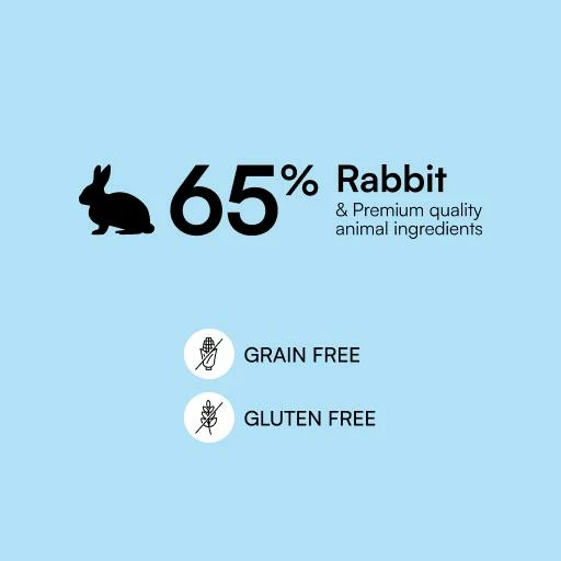 Composition : lapin frais 30%. Protéines de lapin déshydratées. La pomme de terre. Protéines de pomme de terre. Huile de poulet. Pulpe de betterave. Hydrolysat de lapin. levure. Substances minérales. huile de poisson Inuline (source de FOS). Gingembre. mannan-oligosaccharides Yucca schidigera.