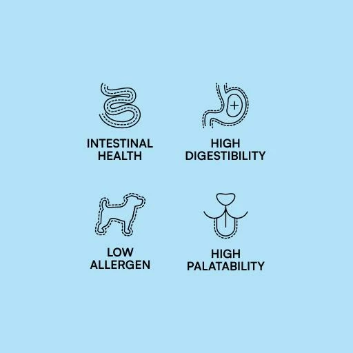 La gamme Hantu Specific Diet n’est pas un aliment médicamenteux et ne nécessite donc pas de prescription vétérinaire. Il convient aux chiens souffrant de digestion sensible, ce qui peut se traduire par des vomissements occasionnels et une mauvaise consistance des selles.