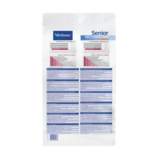 Nourriture vétérinaire spéciale pour chiens âgés de petites et mini races, après stérilisation. Senior Neutered Toy & amp; Small est un aliment light qui aidera votre animal de compagnie à contrôler son poids, satisfaisant ainsi complètement son appétit.Format : 1,5 kg, 3 kg et 7 kg.