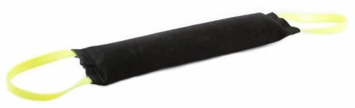 La nouvelle cale-mors à trois poignées offre une transition idéale avant de faire un travail de manchon en pratiquant une prise suffisamment profonde et sûre. Pendant l’entraînement à la morsure, cet équipement permettra au chien de s’entraîner à sauter dans les airs et à atterrir sur le sol. La conception et la flexibilité de la surface de préhension en forme de coin donnent au chien une bonne expérience de prise et les aident à apprendre « la respiration nasale ». La cale à mordre en coton / nylon est recommandée pour les chiens ayant une adhérence incertaine. À partir de 2015 Cales de morsure avec trois poignées en bois disponibles en versions souples.