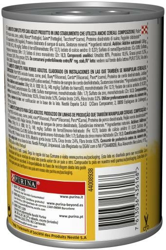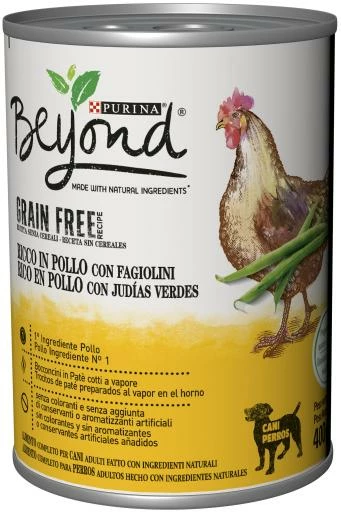 Beyond® Grain Free Recipe vous offre un large choix d’aliments pour chiens afin de favoriser la santé de votre chien, avec la même excellente nutrition que vous attendez de nous. En allant au-delà des céréales, nous élargissons notre offre en vous donnant le choix d’une combinaison alternative qui convient le mieux à votre chien. Cette recette d’aliments pour chiens sans céréales contient des ingrédients reconnaissables auxquels vous faites confiance et fournit à votre chien des protéines de haute qualité. Aliments humides complets pour chiens adultes avec des ingrédients naturels sélectionnés et sans céréales Sans céréales avec des ingrédients naturels sélectionnés Le poulet est l’ingrédient n°1 Sans colorants, arômes ou conservateurs artificiels ajoutés Sans gluten ajouté Poulet (16%), Buf, Porc, Dinde, Protéines de porc déshydratées, Minéraux, Haricots verts (1,1% de haricots verts séchés, équivalent à 9,9% de haricots verts). Ingrédients naturels. Additifs nutritionnels : UI/kg : Vit A : 1020 ; Vit D3 : 140 ; mg/kg : Sulfate ferreux monohydraté : 38 ; iodate de calcium anhydre : 0,50 ; sulfate de cuivre pentahydraté : 3. 6 ; sulfate de manganèse monohydraté : 5,2 ; sulfate de zinc monohydraté : 67. Humidité : 80%, protéines brutes : 10,5%, huiles et graisses brutes : 5,6%, cendres brutes : 2,4%, fibres brutes : 0,3%. Mode d’emploi et apport journalier recommandé : Ces quantités sont des moyennes basées sur des chiens adultes modérément actifs dans des conditions environnementales normales. Les besoins individuels varient et la quantité de nourriture doit être adaptée en conséquence pour que votre chat conserve un poids maigre et sain. Fournissez toujours de l’eau propre et fraîche.