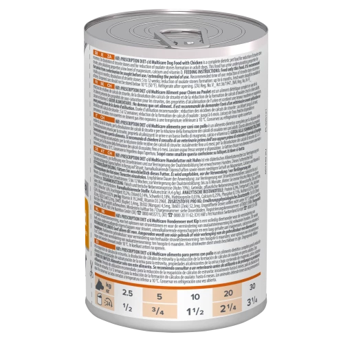 Les calculs vésicaux sont très douloureux et peuvent réapparaître après avoir été dissous. Prescription Diet Canine c/d contribue à éviter une nouvelle formation des calculs de struvite. Bienfaits Essentiels: – Aide à réduire la récidive des cristaux et des calculs de struvite et de phosphate de calcium. – Une Formule Supérieure Enrichie en Antioxydants pour aider à réduire les lésions cellulaires oxydatives. Différentes tailles disponibles: 370g