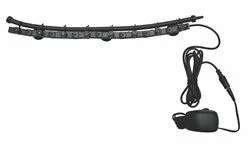 Le rideau comprend 12 ampoules à DEL bleues, un transformateur de basse tension et 4 ventouses.
