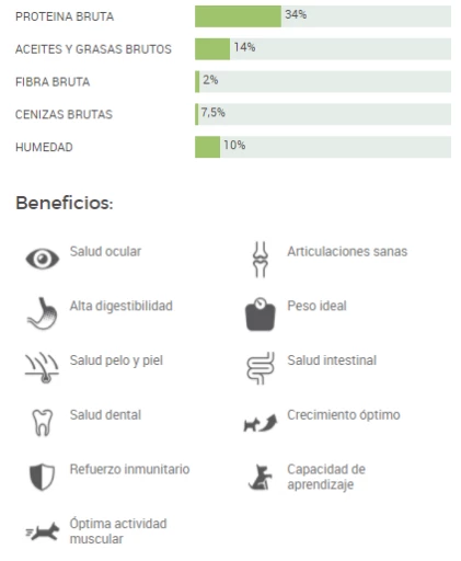 Nourriture pour chiots jusqu’à 18-24 mois, de grandes races. C’est un Nourriture naturelle très complet qui fournit tous les nutriments nécessaires. Il renforce leur système immunitaire et leurs articulations. Très digestible.