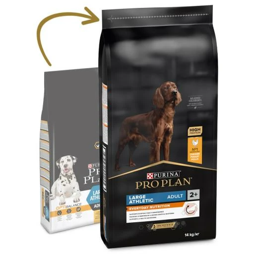 PURINA® PRO PLAN® Large Atheltic Adult with OPTIBALANCE® riche en poulet est un aliment sec complet pour chiens adultes.
