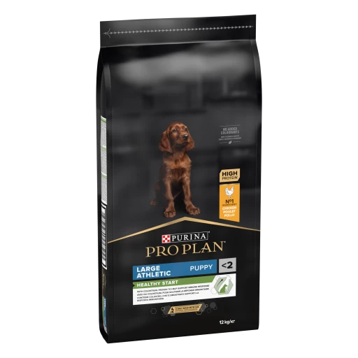 PURINA® PRO PLAN® Grand Chiot Athlétique avec OPTISTART® Poulet est un aliment sec complet spécialement formulé par des experts vétérinaires et nutritionnels pour les chiots de grandes races athlétiques. Il convient également aux chiennes enceintes et allaitantes.