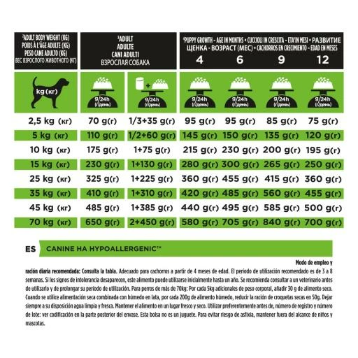 Consultez le tableau pour connaître la quantité de nourriture quotidienne recommandée. Ces montants ne sont qu’indicatifs. Pour aider à maintenir votre chien dans une condition physique idéale, ajustez les quantités en fonction du niveau d’activité de votre chien, de sa condition physique et de ses besoins individuels. Proplan conseille de toujours laisser de l’eau propre et fraîche à disposition. Pour garder votre chien en bonne santé, consultez régulièrement votre vétérinaire.