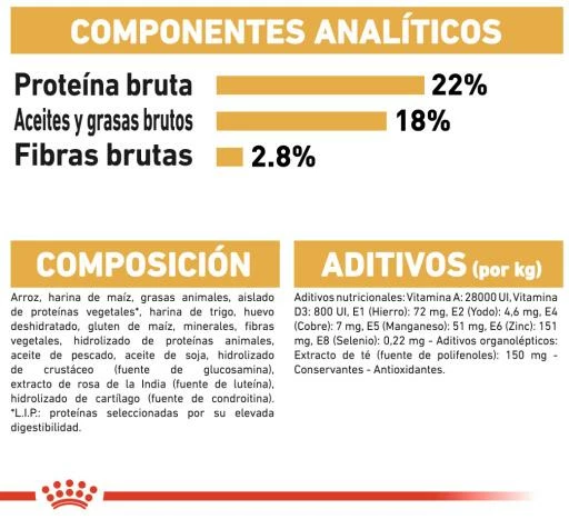 Le dalmatien a une prédisposition à développer certaines calculs urinaires. Aide à maintenir des voies urinaires par fonction des sources de protéines adaptadas.MANTENIMIENTO CARDÍACAEsta formulées pour aider contient des nutriments spécifiques à maintenir la fonction cardiaque. Enrichi en EPA et la taurine et DHA.PIEL SANTÉ aide la fonction barrière de la peau (exclusive) et maintenir une peau saine (EPA et DHA) taille .CROQUETA EXCLUSIVAEl, la forme, la texture et sont formulés croquette Adaptée dalmatien.