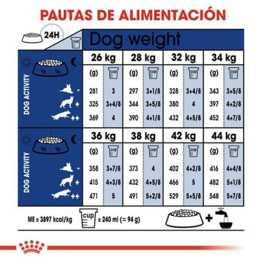COMPOSANTS ANALYTIQUES: Protéine brute: 26% – matières grasses brutes: 17% – Cendres brutes: 5,8% – fibres brutes: 2,5%.