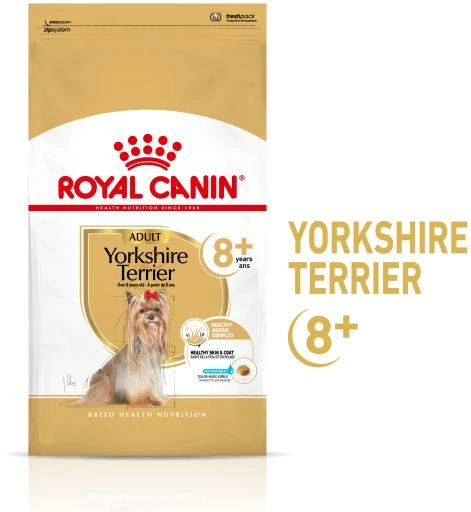 Caracteristiques Royal Canin Yorkshire Terrier Ageing 8+ pour les races de chiens âgés