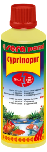 Conditionneur d’eau contre les bactéries et les parasites dans l’étang de jardin. SERA pond cyprinopur est très utile en cas d’infestation bactérienne, désinfecte les plaies, empêche la prolifération des virus dans l’eau de l’étang et réduit le risque d’infection par des parasites libres dans l’eau de l’étang. SERA pond cyprinopur peut également être utilisé à titre préventif pour désinfecter l’eau de l’étang.