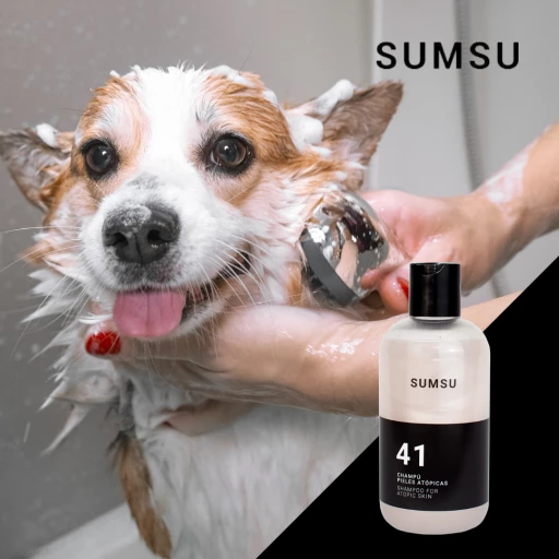 Le shampooing Sumsu pour peau atopique convient aux chiens et aux chats. Il contient des principes actifs qui combattent les problèmes dermatologiques tels que les pellicules, la chute des cheveux et les dermatites.