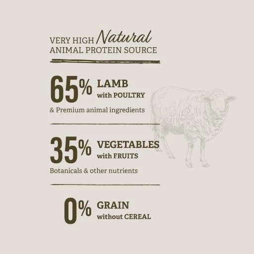 COMPOSITION: Agneau frais 30 %. ProtĂ©ine d’agneau dĂ©shydratĂ©e. Batata. Petits pois. Graisse de poulet. ProtĂ©ine de petit-pois. Hydrolysat de foie d’agneau. Pulpe de pomme. Levures. Huile de poisson. Substances minĂ©rales. Carotte dĂ©shydratĂ©e. ChicorĂ©e (source de FOS). Mannan-oligosaccharides (MOS). Myrtilles dĂ©shydratĂ©es. Algues. Camomille. Persil. Rosier des chiens. Romarin. Clou de girofle. Glucosamine. Yucca schidigera. Cartilage (source de chondroĂŻtine).