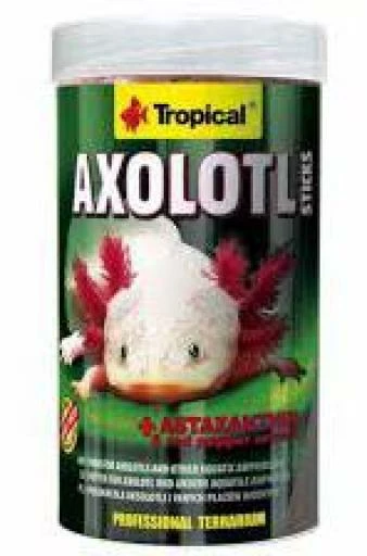 AXOLOTL STICKS Nourriture spéciale à haute teneur en protéines sous forme de bâtonnets descendants pour axolotls, pleurodèles, grenouilles à griffes et autres amphibiens aquatiques consommateurs de matériel animal. La variété d’ingrédients d’origine animale y compris poissons, mollusques et crustacés, est une source de protéines de haute qualité aisément assimilable. Grâce à la composition optimalement équilibrée de vitamines et d’oligo éléments une alimentation régulière avec AXOLOTL STICKS assure aux amphibiens une croissance et un développement appropriés, tandis que l’addition d’astaxanthine et d’extrait de poivrons intensifient leur coloration. La nourriture est également enrichie avec le stimulateur naturel bêta-glucan améliorant le système immunitaire des amphibiens et facilitant le processus de guérison des amphibiens ayant été mordus par d’autres habitants de la cuve.